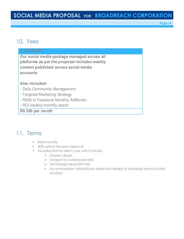 Typical subheadings in a social media proposal include: Content creation and curation: Includes creating a social media content calendar, creating Our social media proposal template even includes an audit which you can carry out on your potential clients' social media following, as well as. Whether you're providing social media management, marketing, or consulting services, the crucial step in winning a client is sending out a business proposal. Social media proposals aren't easy to write.